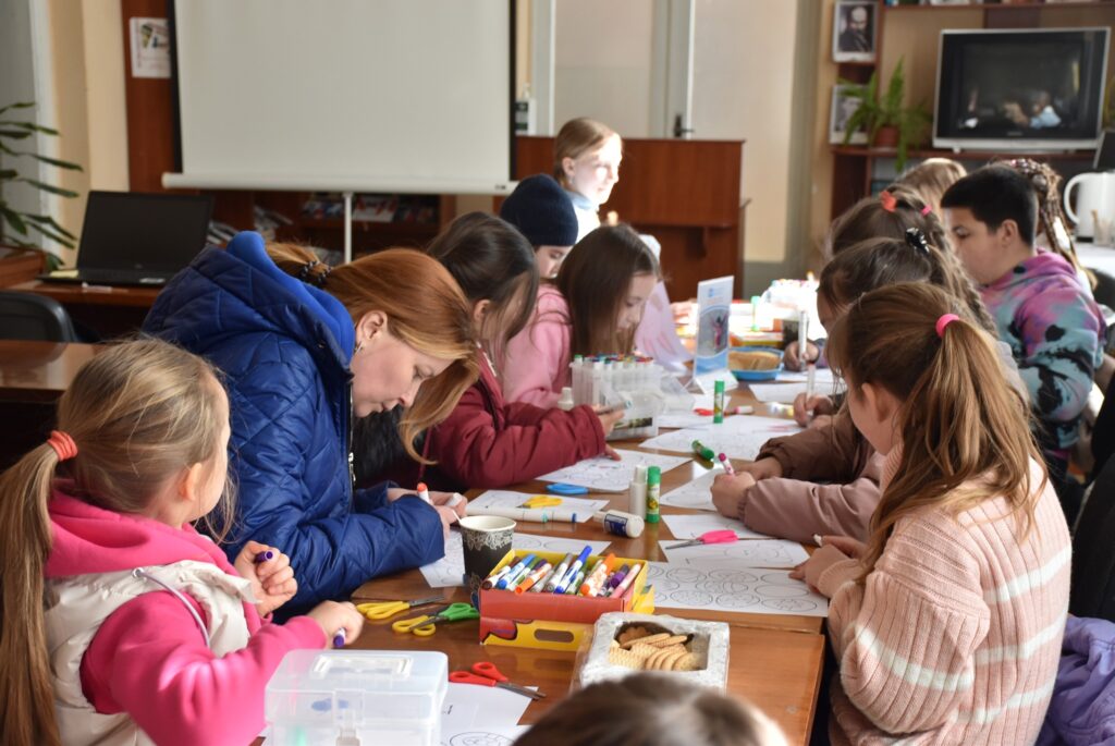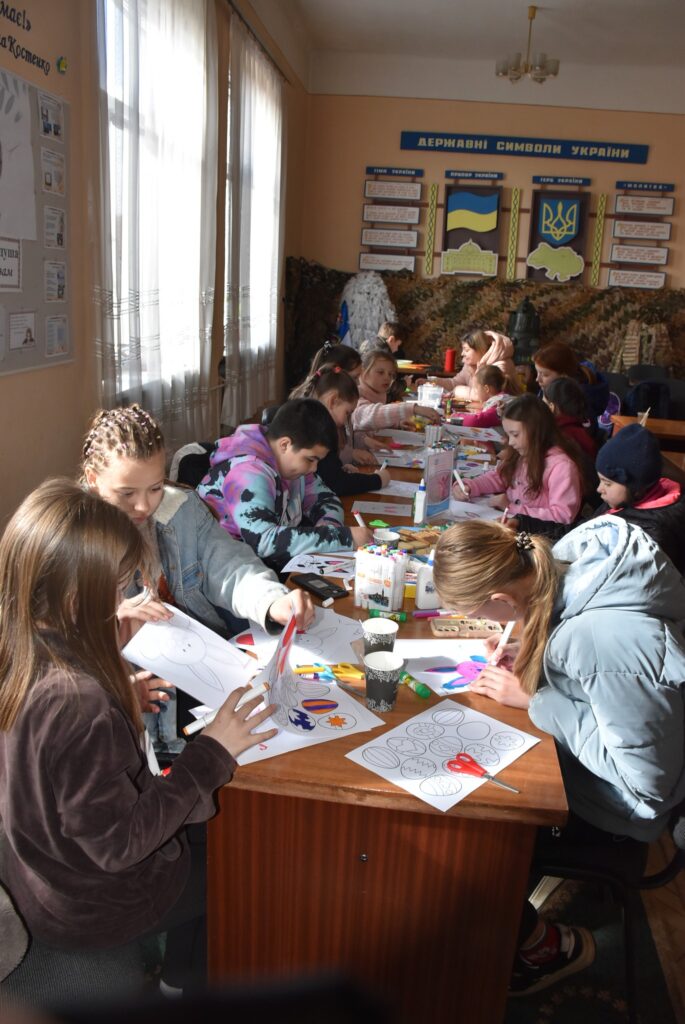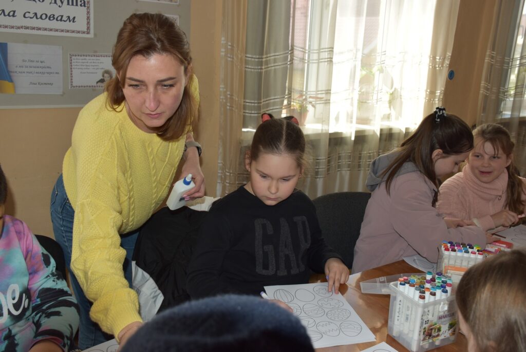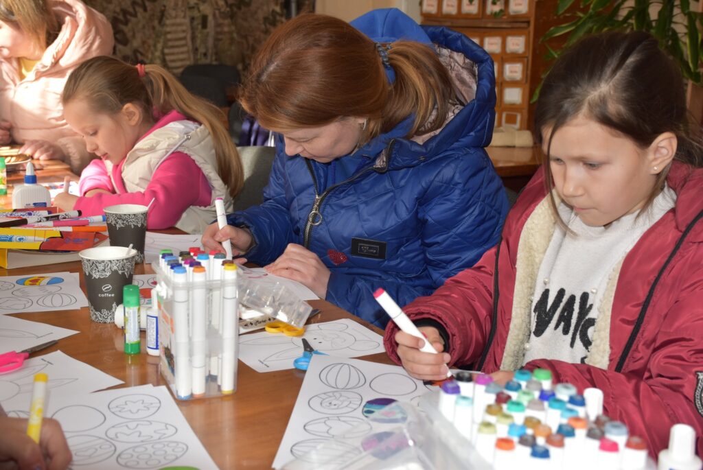 із числа внутрішньо переміщених осіб. Захід провела фахівчиня з команди СОС Дитячі Містечка Ужгород, Оксана Яременко, яка допомогла дітям створити святкові декоративні віночки своїми руками.