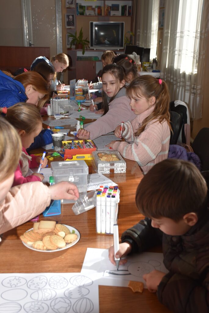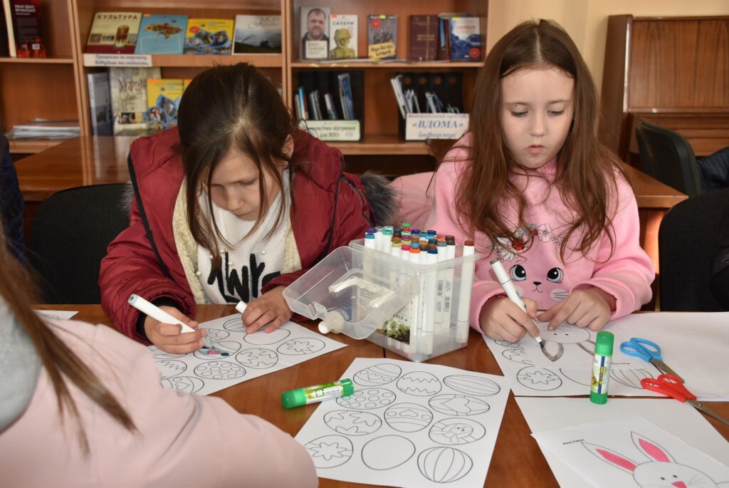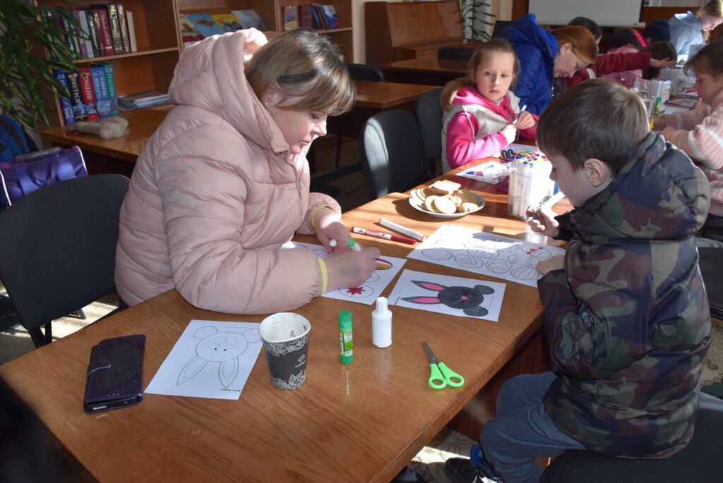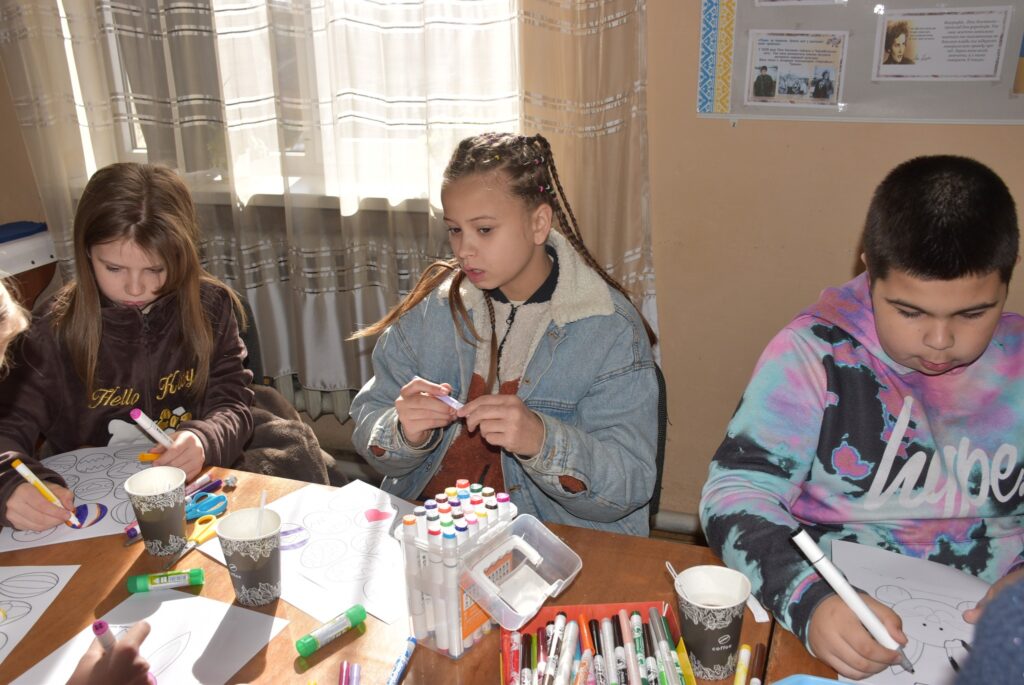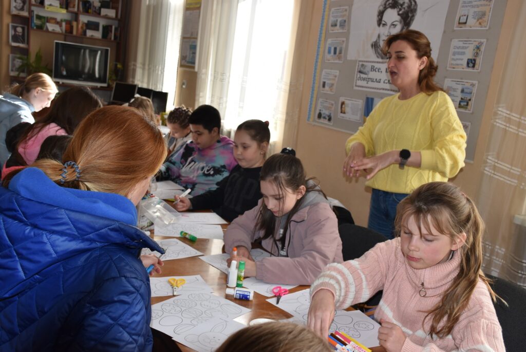 із числа внутрішньо переміщених осіб. Захід провела фахівчиня з команди СОС Дитячі Містечка Ужгород, Оксана Яременко, яка допомогла дітям створити святкові декоративні віночки своїми руками.