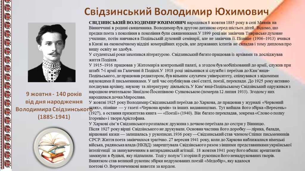 До Вашої уваги віртуальний перегляд про українських письменників – ювілярів жовтня.