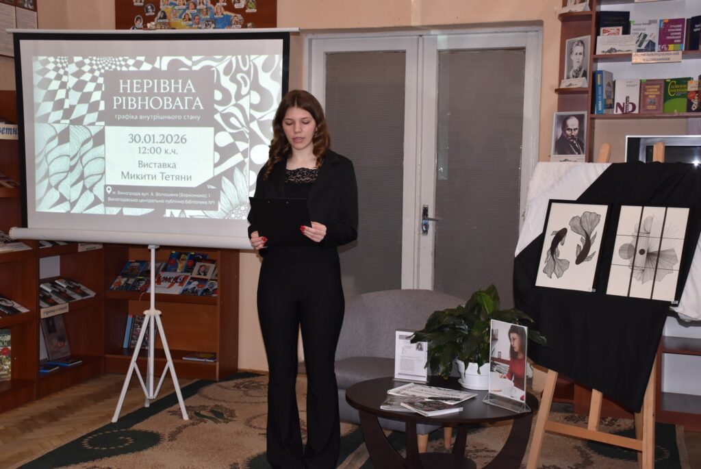 Сьогодні у Виноградівській центральній публічній бібліотеці №1 відбулася презентація виставки картин Тетяни Микити — багатогранна творча особистість, сповнена емоцій, рефлексій та тонких переживань. Захід став справжньою подорожжю у світ внутрішніх станів, емоцій та образів, де мистецтво поєдналося зі словом.