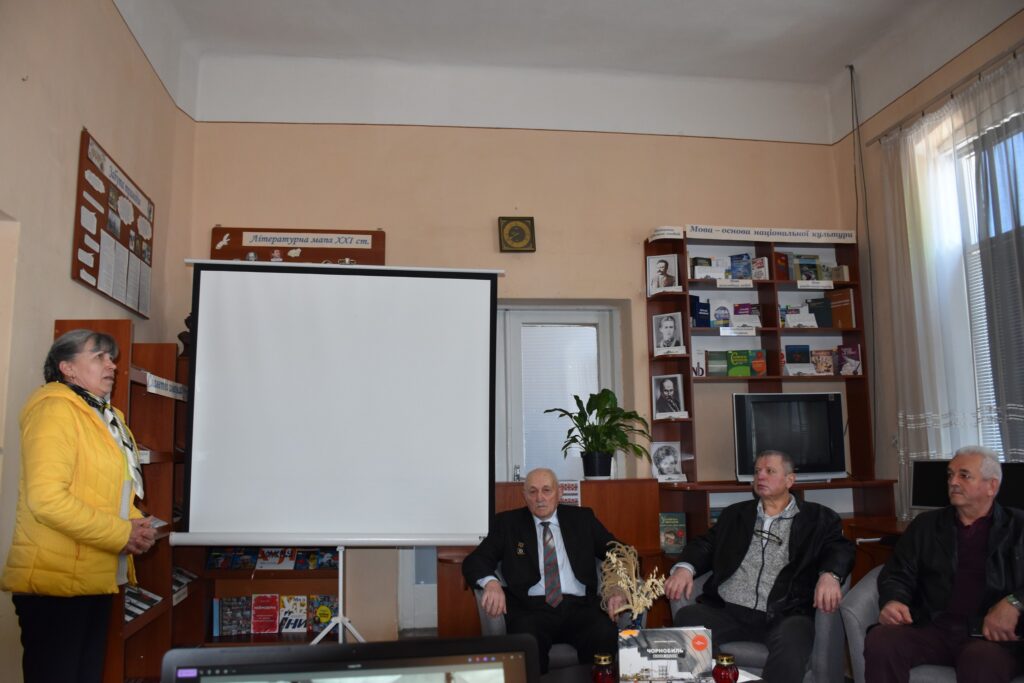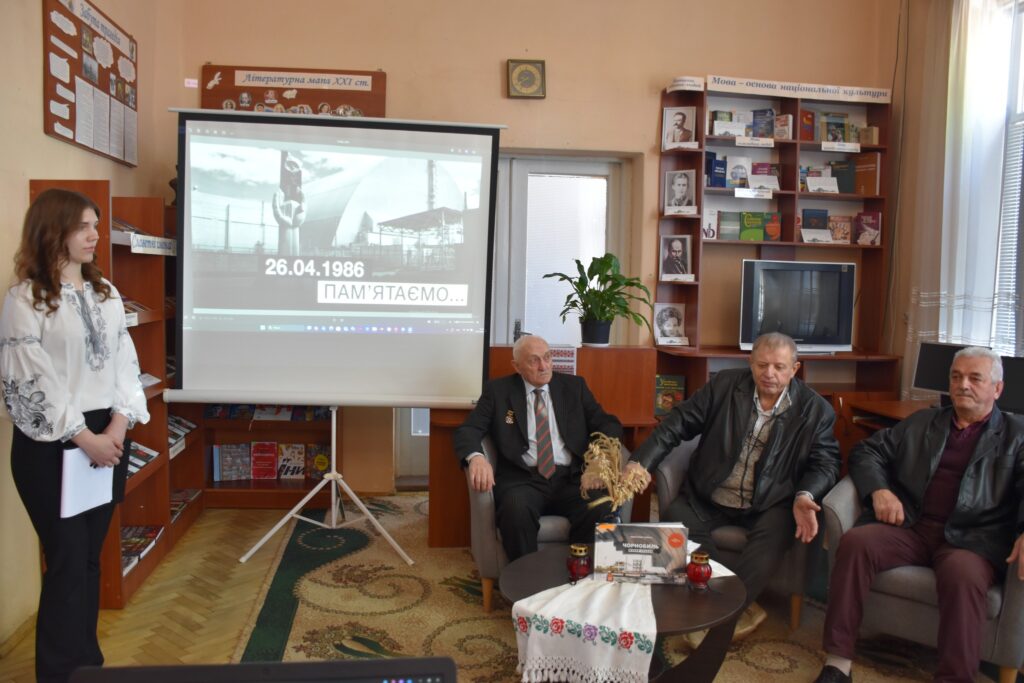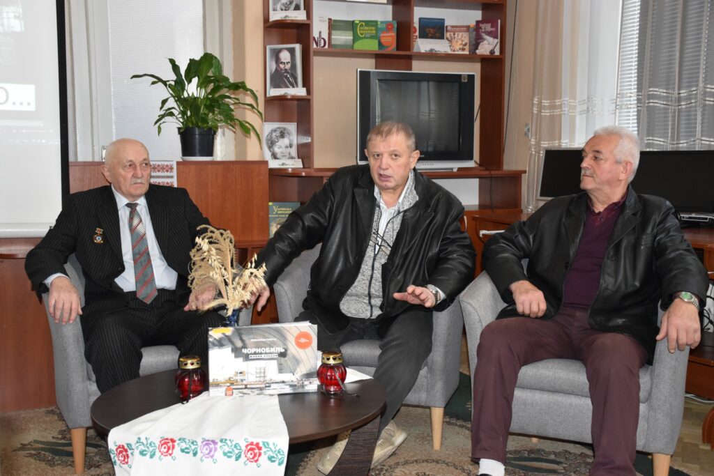 Особливо зворушливою частиною заходу стали щирі спогади запрошених гостей — ліквідаторів аварії на ЧАЕС: Данилевича Володимира Григоровича, Менджула Івана Степановича – ліквідатор аварії на ЧАЕС 1 та Сайка Юрія Юрійовича ліквідатор 2 категорії. Вони поділилися власними спогадами про ті події, розповіли про участь у ліквідації наслідків аварії, про виклики, небезпеку та відповідальність, яка лягла на їхні плечі.