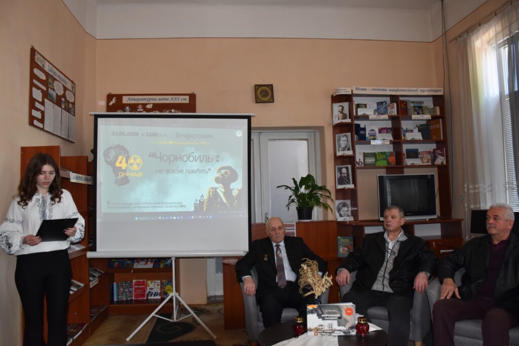 Напередодні 40-ї річниці Чорнобильської катастрофи у стінах бібліотеки відбувся вечір-спомин «Чорнобиль: не згасне пам’ять», який об’єднав студентську молодь ВСП “Виноградівський фаховий коледж Мукачівського державного університету” та почесних гостей задля вшанування героїв і жертв трагедії.